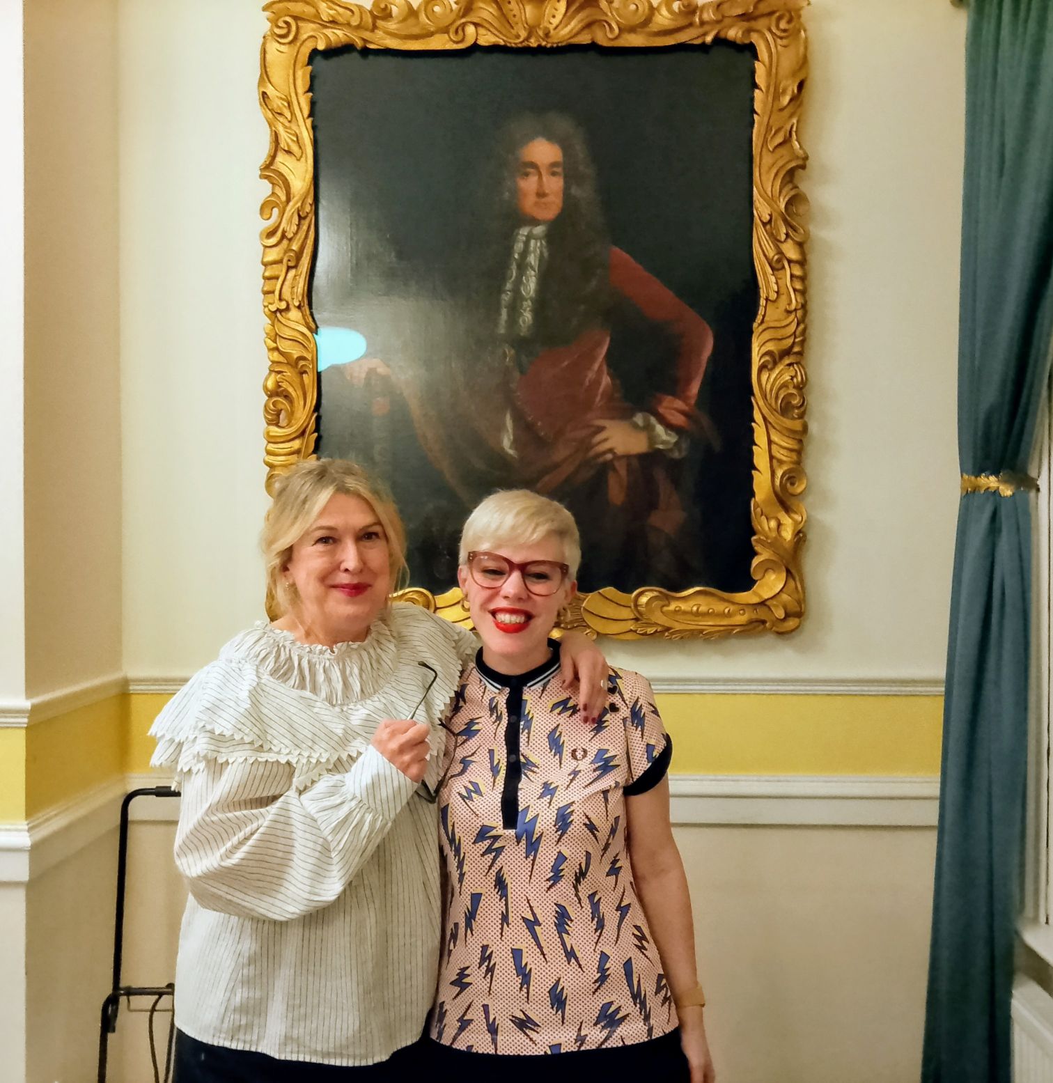 I went along to a Collaging Workshop led by Hazel Pitt. An evening session which took place at Lichfield Guildhall and was organised by the Samuel Johnson Birthplace Museum. This class was held on 19th February 2026 between 6:00pm – 9:00pm. Nine women participants attended. By pulling up a chair at her craft table, I witnessed firsthand how Hazel created a safe space for expressive experiment and permitted individual creative license to flourish. There was very little expert-led ‘teacher talk’ transmitted from down the front like some sage-on-the-stage specialist who talks at attendees. This tired top-down lecture model was nowhere to be seen. Likewise, so was old school suppressive shushing and stifling straitjacket silences. Hazel deftly engineered an engaging environment wherein peer-to-peer interactions were dialogic and collaborative. Chatter and colour filled the portrait-lined room at Lichfield Guildhall.