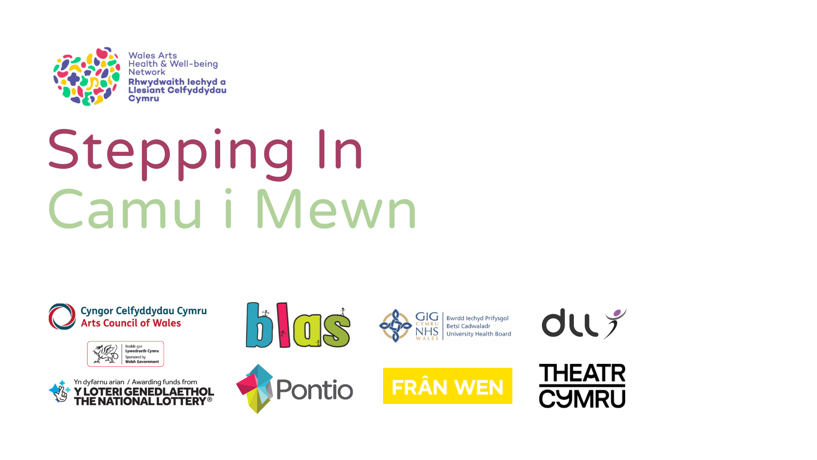 Cynlluniwyd Camu i Mewn mewn ymateb i ddiffyg amrywiaeth yn y gweithlu creadigol ym maes y celfyddydau ac iechyd. Y nod yw meithrin carfan o ymarferwyr i gyflwyno prosiectau mewn lleoliadau gofal iechyd sy’n rhannu profiad byw pobl o gymunedau lleiafrifedig. Anogir ymarferwyr mentai â phrofiad byw o iechyd meddwl, cefndiroedd mwyafrif byd-eang, eithrio cymdeithasol neu gefndiroedd economaidd-gymdeithasol isel i ymgeisio i’r rhaglen a chânt eu cefnogi i gymryd rhan mewn wythnos lawn o hyfforddiant preswyl dwys, cysgodi artist profiadol ar brosiect byw mewn lleoliad iechyd neu gymunedol am hyd at 10 diwrnod (gyda chymorth partneriaid y prosiect), derbyn sesiynau mentora, bwrsariaeth a chymorth cyfannol gan gynnwys goruchwyliaeth a chymorth cymheiriaid.