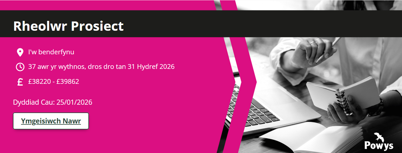 Mae cyfle cyffrous wedi codi i Fwrdd Iechyd Betsi Cadwaladr (BIPBC) am secondiad/tymor penodol o fewn Cyfarwyddiaeth Iechyd y Cyhoedd, i gyflenwi dros absenoldeb mamolaeth tan Fawrth 31ain 2027. Bydd deiliad y swydd yn darparu rheolaeth gyffredinol ar gyfer prosiectau cymhleth iawn a sensitif iawn a gyflawnir gan y Gyfarwyddiaeth a phartneriaid rhanbarthol o fewn yr ardal ac ar draws ardal y Bwrdd Iechyd. Bydd gennych ddiddordeb gwirioneddol yn y celfyddydau mewn presgripsiynu iechyd a chymdeithasol, gan gydnabod rôl dulliau creadigol a chymunedol wrth gefnogi iechyd a lles.