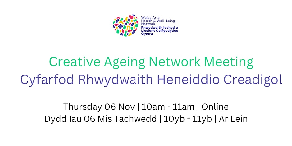 Join us for our quarterly network meeting to hear about the range of creative ageing projects happening across Wales. Tickets here | Ymunwch â ni ar gyfer ein cyfarfod rhwydwaith chwarterol i glywed am yr ystod o brosiectau heneiddio creadigol sy'n digwydd ledled Cymru. Tocynnau yma